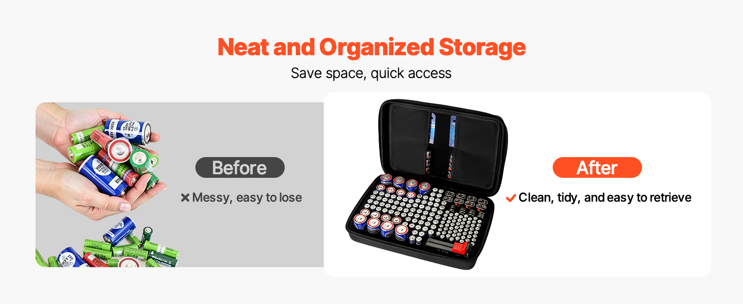 The extra-large capacity design accommodates various battery types and sizes, allowing for centralized storage. It makes it easy to manage and use your batteries efficiently, while keeping your workspace or storage area neat and organized.
