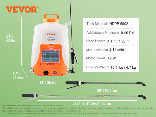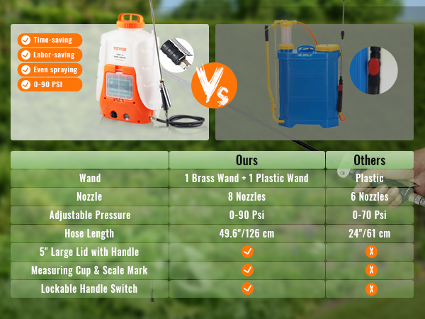 I had went through 3 hand pump sprayers prior to purchasing this from vevor and I wish I would’ve went this route the first time. The power it has and the time it saves me is well worth the price point.