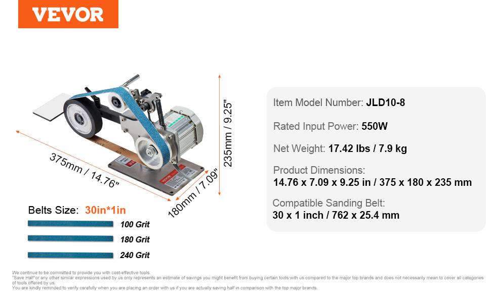 I think anyone that is considering a 1×30 should not hesitate to order the Vevor. It is just great