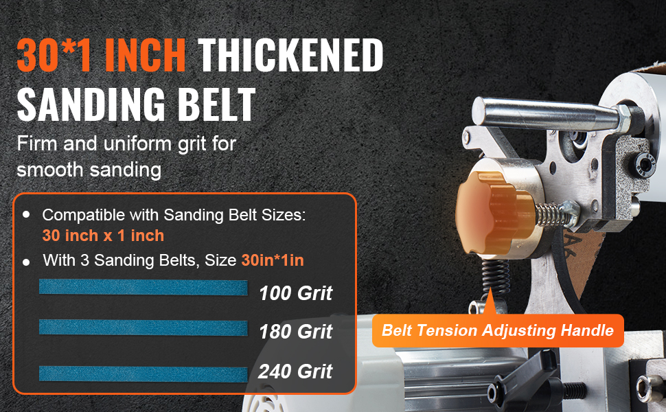 We provide three 30*1 inch sanding belts with different grits: 100 grit, 180 grit, and 240 grit. You can choose the appropriate belt for optimal performance for your sanding tasks. From coarse grinding to fine polishing, we’ve got you covered.