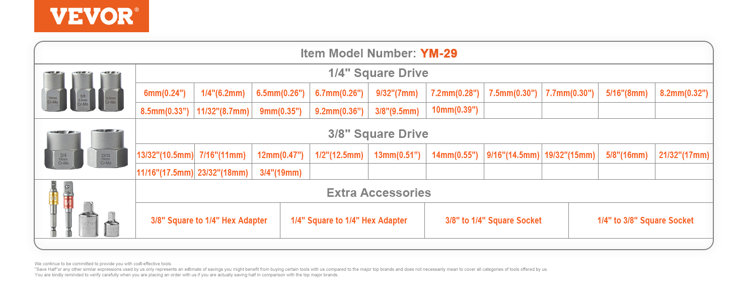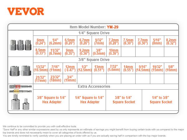- Versatile Tool Compatibility: Our extractor set is equipped with adapters and square head sockets that fit 3/8″ and 1/4″ manual or power tools, such as adjustable wrenches, ratchets, and electric wrenches. You can perform disassembly tasks using the tools you already have without the need for additional accessories or tools.