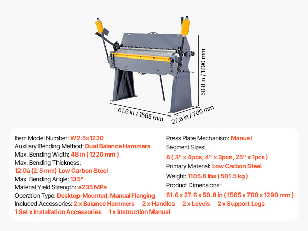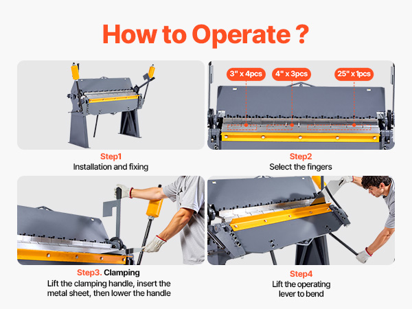 Bend metal like a pro with this 48-inch sheet metal brake. Ideal for workshops, the box and pan brake handles 12 gauge steel, supports multiple materials, and features modular fingers for complex bends—easy to use, stable, and built for precision bending.