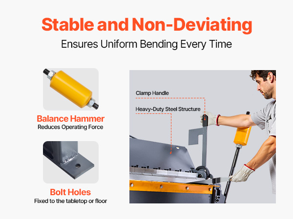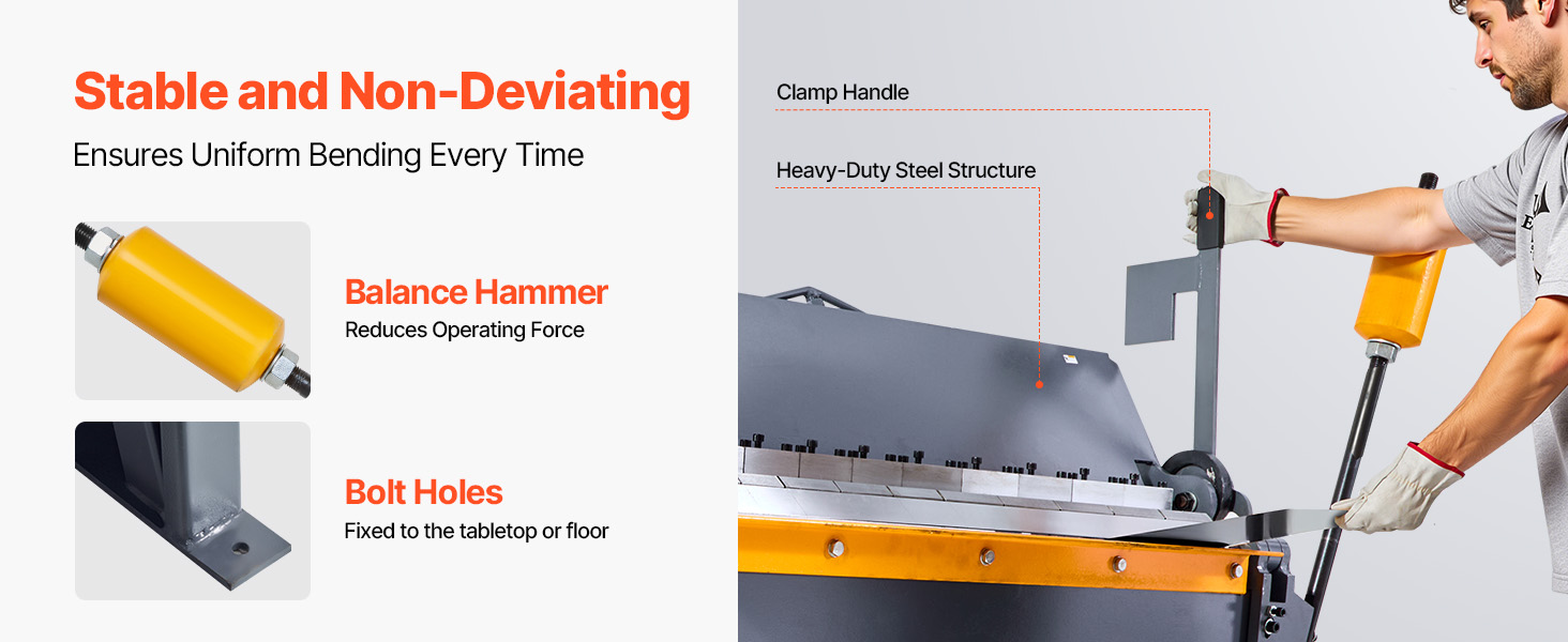 Enhanced with a balancing weight to offset the force during clamping, minimizing deformation—an upgrade over standard brakes. Bolt it down to your workbench to ensure steady, accurate bends.
