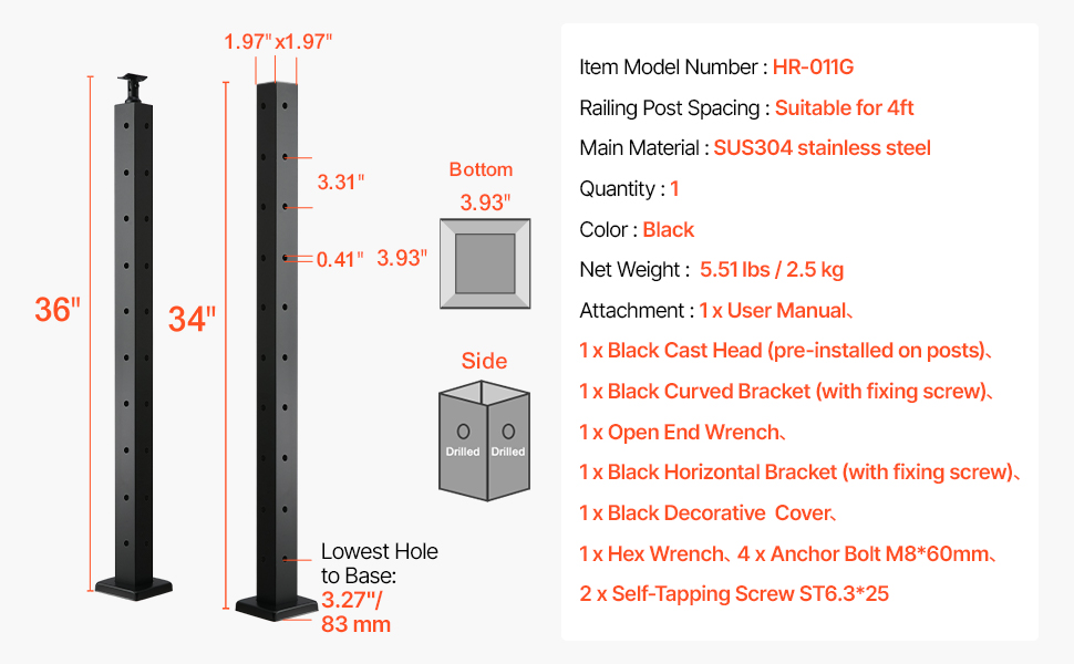 Discover the new standard in railing posts! Made from durable SUS304 stainless steel, our cable railing post offers both strength and style. Easy to install with pre-drilled holes and included accessories, it’s ideal for securing decks, railings, and more, while meeting all code requirements.