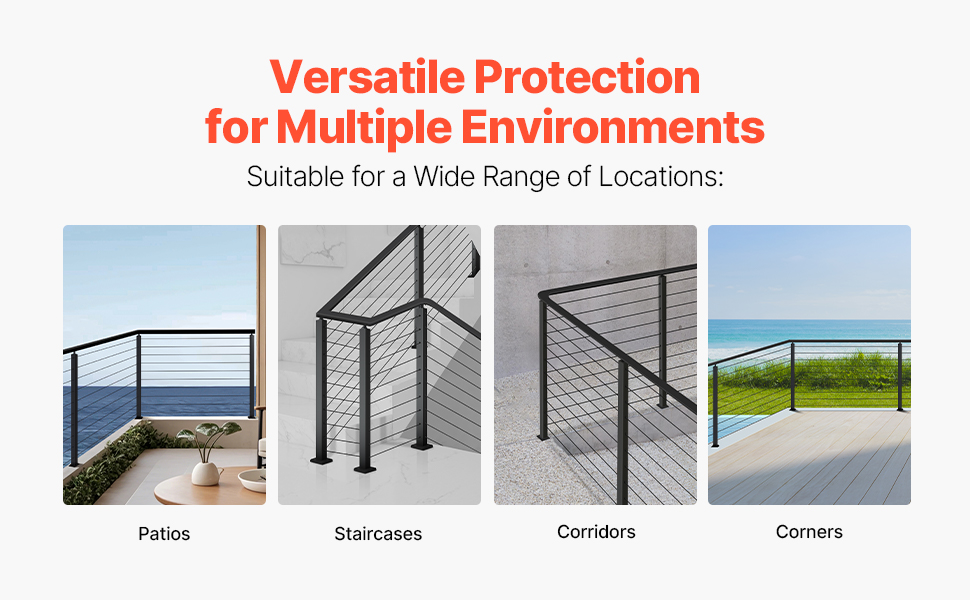 - Multi-Scene Protection: Our cable rail post is suitable for both indoor and outdoor applications, including decks, stairs, porches, fences, patios, balconies, gardens, residential buildings, commercial offices, hotels, garages, and more.
