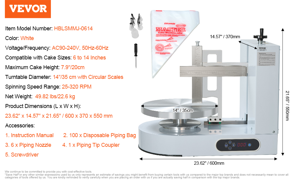 | Compatible with Cake Sizes | 6 to 14 Inches |