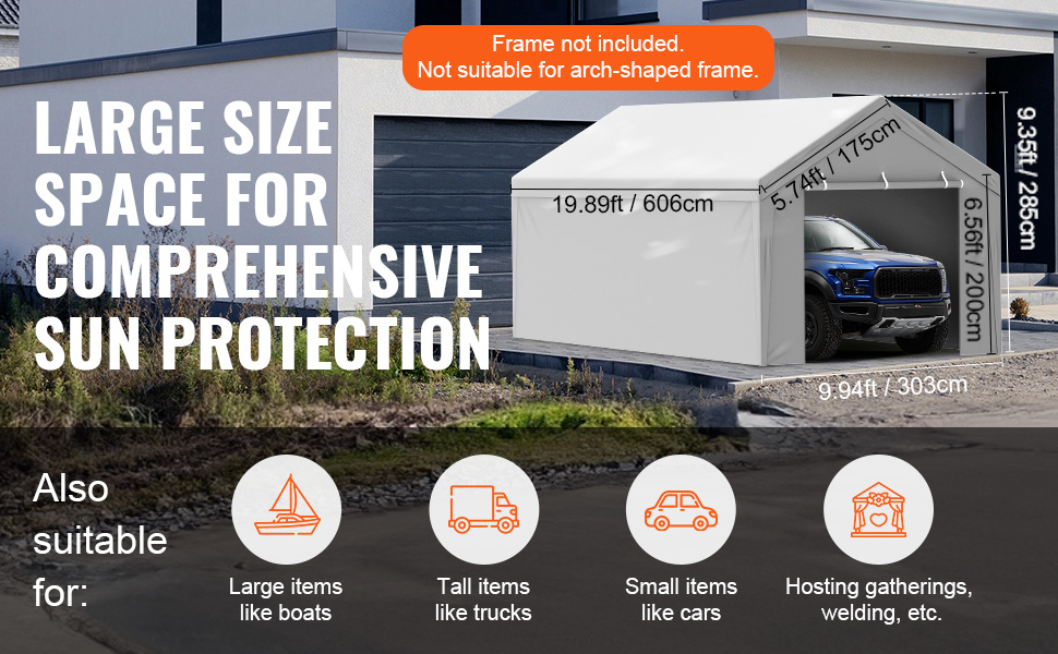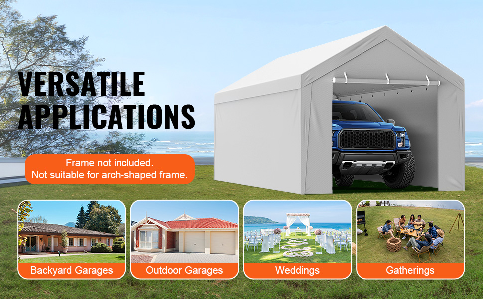 - Wide Application: This canopy is versatile, suitable for replacing garage side canopies, setting up temporary garages, and parking various vehicles. It can also be used for parties, weddings, creating shaded areas, and more creative uses awaiting your discovery!