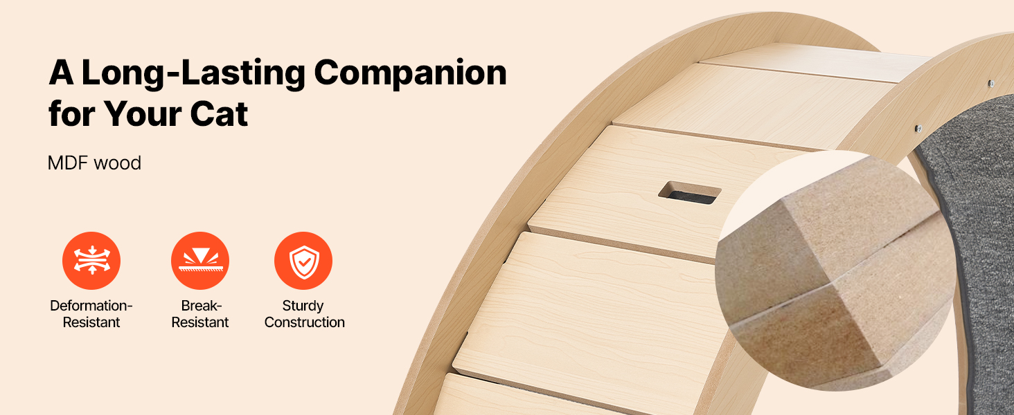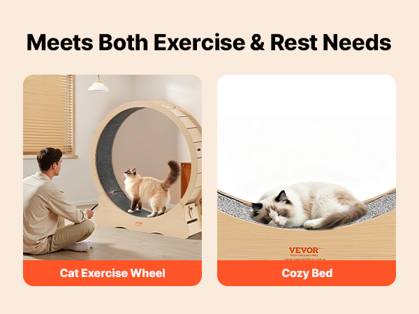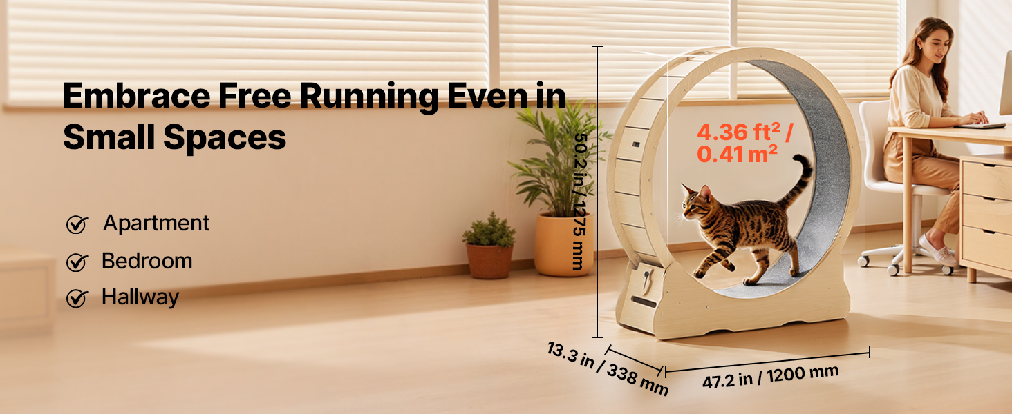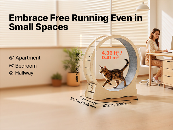 - Durable Wooden Frame: Crafted from 0.5 in/12 mm high-density wood, this cat exercise wheel resists moisture and wear, standing up to energetic play without deformation. Occupying just 4.36 ft²/ 0.41 m²), it’s ideal for small spaces while giving your cat plenty of room to exercise, stay happy, and reduce stress or anxiety