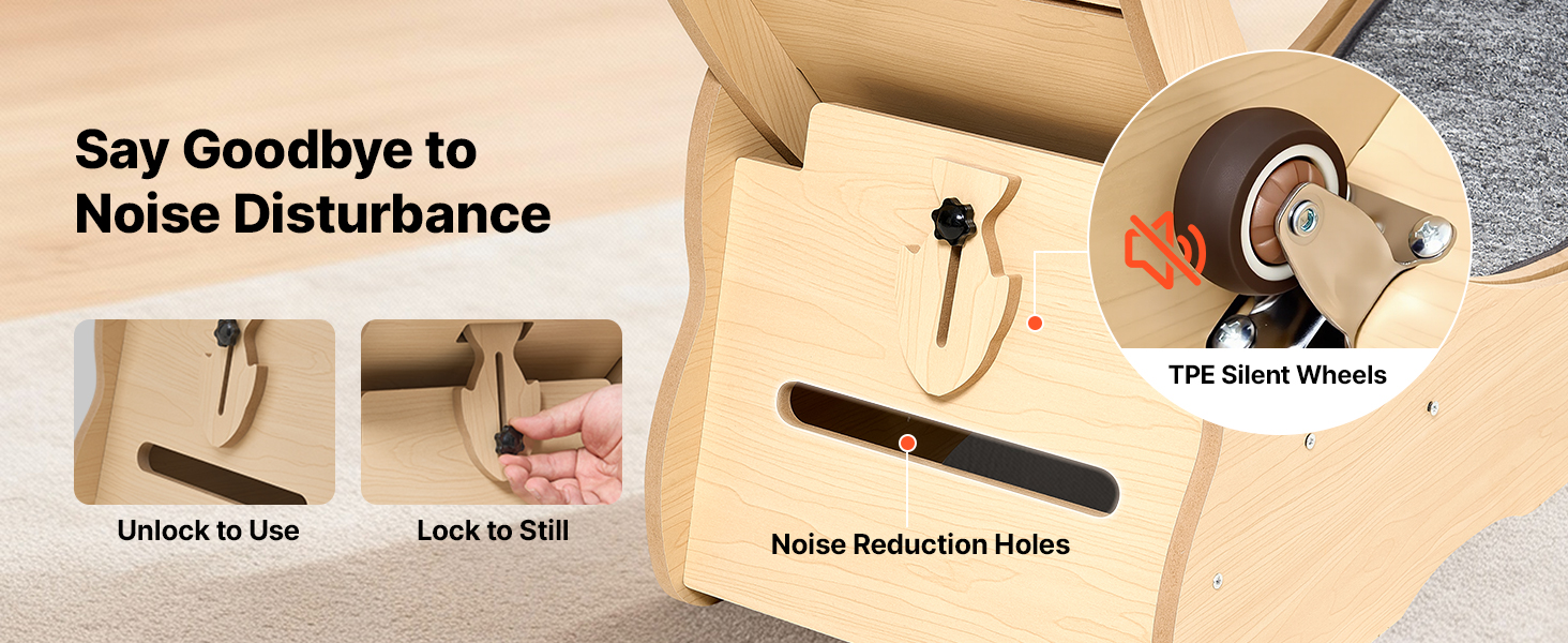 Both the running and stopper wheels are made with TPE silent wheels, offering cushioning and vibration reduction to minimize noise. Let your night-active cat run freely without disturbing your peace.
