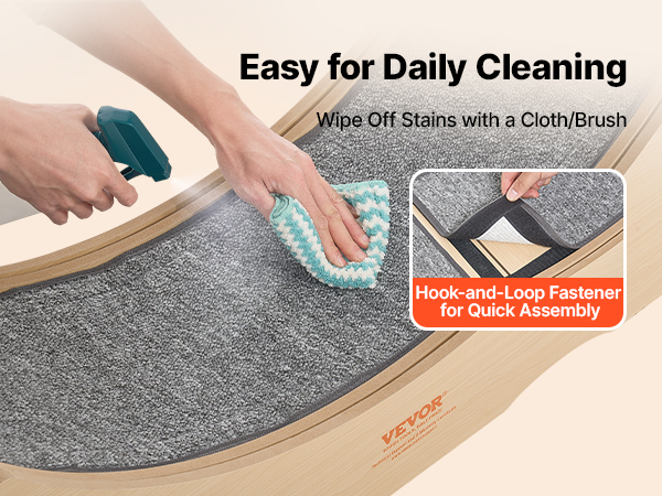 The track mat is securely attached with Velcro, preventing movement. Its soft material reduces friction, protecting your cat’s paws from injury.