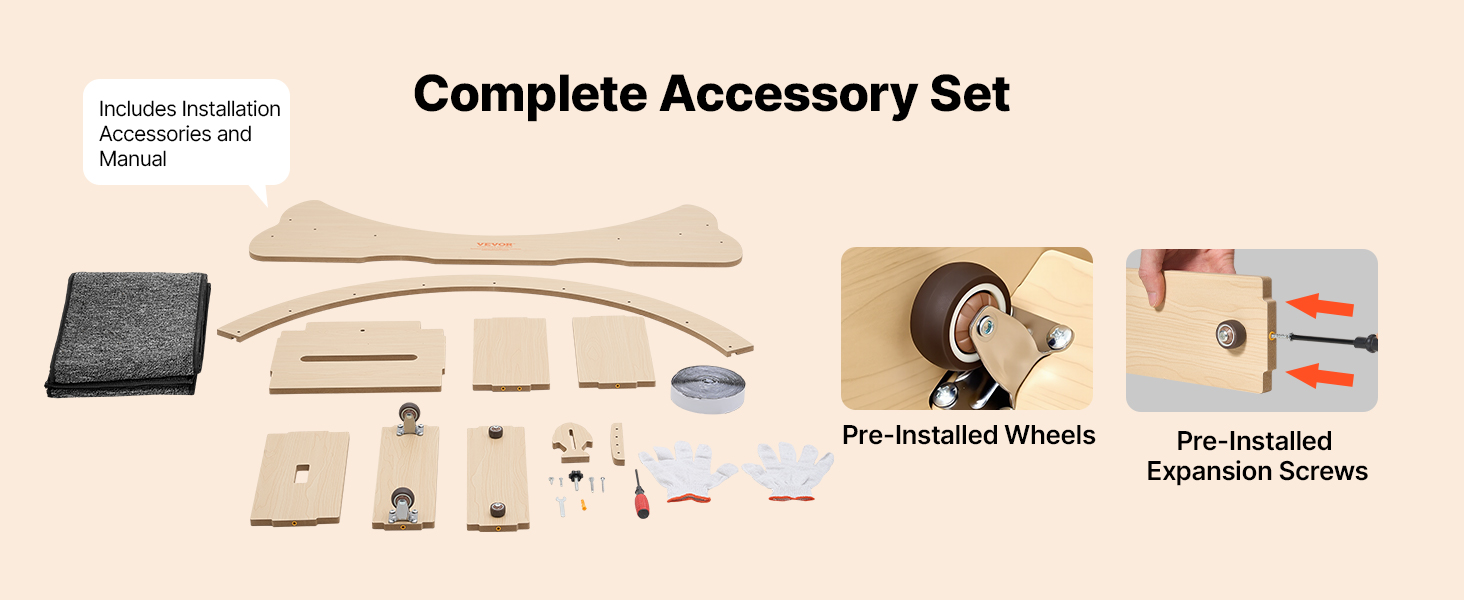 - Complete Accessory Kit: The cat running wheel kit includes a detailed assembly manual, gloves, screwdriver, pre-installed expansion screws and wheels, saving you assembly time. A cat teaser stick to train your cat to use the wheel quickly. The track mat is secured with hook-and-loop fastener for easy cleaning and removal