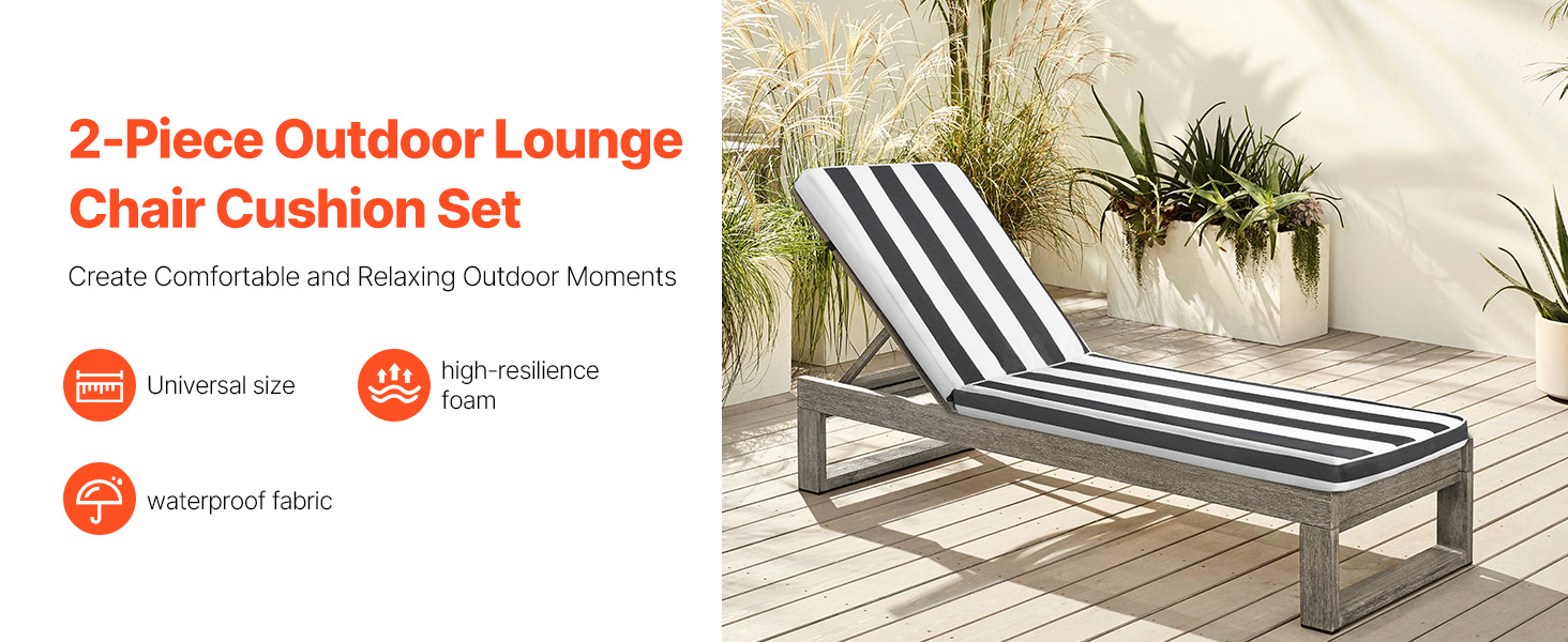 10 reviews for Chaise Lounge Cushion, 74 x 22 x 3 in, Set of 2 Outdoor Lounge Chair Cushions, Waterproof & Fade-Resistant Sun Lounger Cushions with Ties, Patio Lounger Pads for Pool Deck, Black & White Stripes