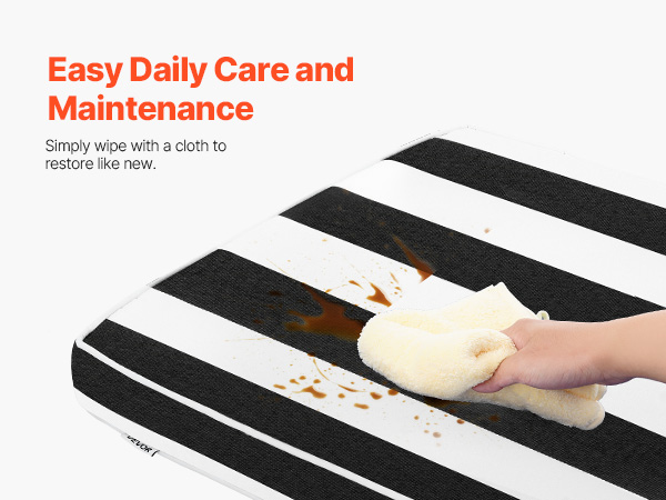 • Thick, High-Density Foam: Filled with 28D high-resilience foam up to 3 in thick, our chaise lounge cushion is soft, supportive, and quickly rebounds after use. Whether you're relaxing for hours or moving it frequently, this outdoor furniture cushion stays plush and supportive. Tip: Allow 24 hours after unpacking for full expansion.
