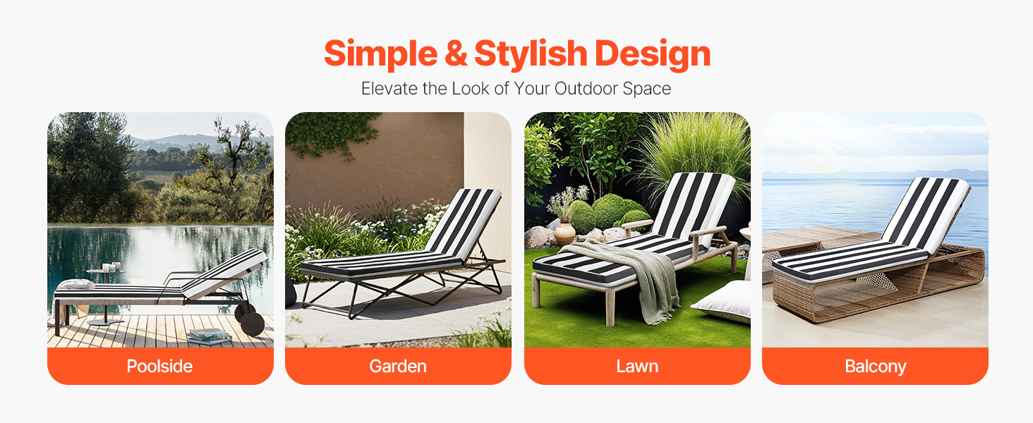 With a clean, stylish design, this patio lounge cushion blends effortlessly into any space—by the pool, in the garden, on the lawn, or on your balcony—adding comfort and charm to your outdoor setup.