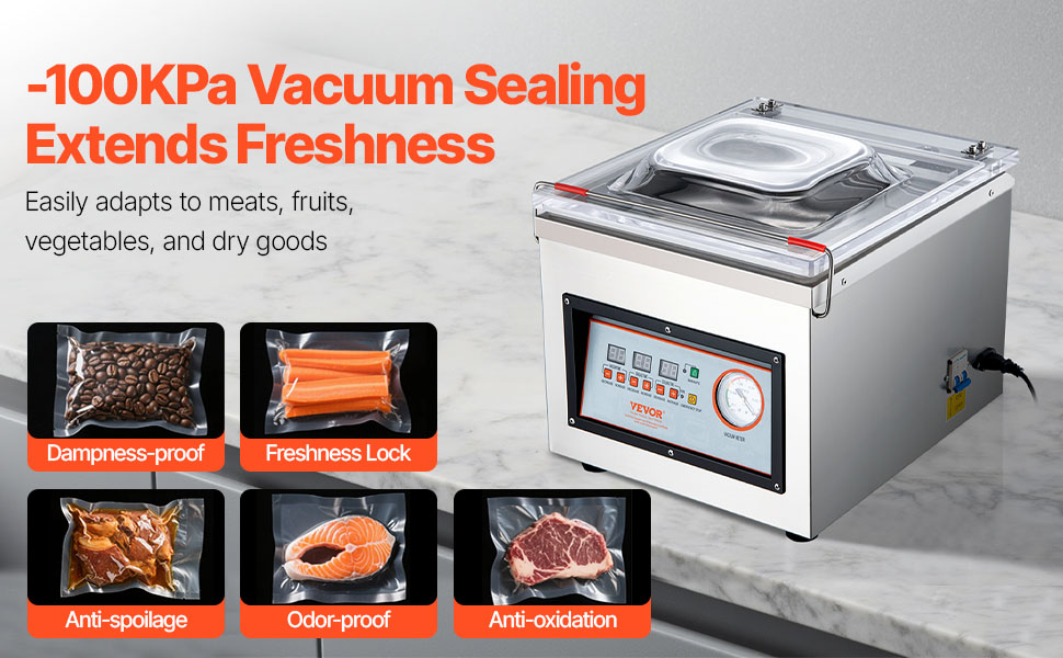 - -100KPa Vacuum Power: This vacuum sealer nearly removes all air to block oxidation and slow spoilage. Meat and seafood stay fresh in the freezer, while coffee and dry goods keep crisp—no additives needed