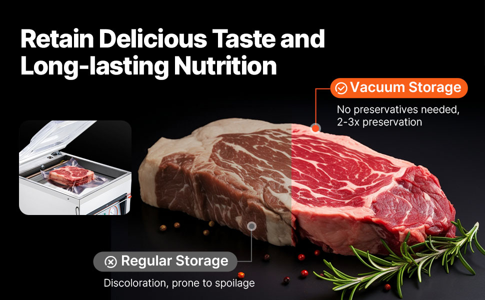 A 100KPa vacuum locks in cell activity, keeping meat juicy and colorful even after months in the freezer. Our chamber sealer machine reduces food waste while preserving flavor and nutrients.