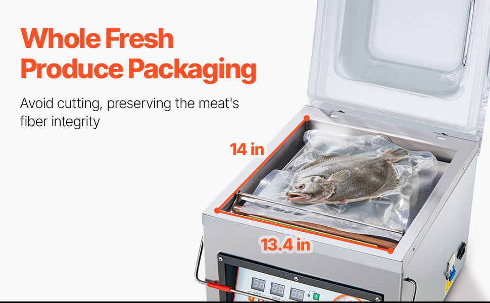 - Fits Big & Small Items: With a deep chamber, the chamber vacuum sealer accommodates large steaks, whole bread loaves, or bulk goods. It supports standard vacuum bags and meets the needs of homes, bakeries, and butcher shops.