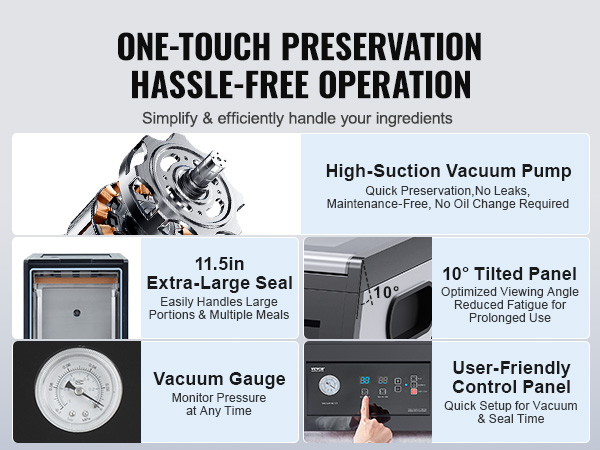 One-click simplicity means even kitchen newbies can master this chamber sealer machine in no time. With a top-notch vacuum pump, it locks in flavor faster, relieving you from maintenance worries and oil changes. It’s a hassle-free way to keep food fresh.