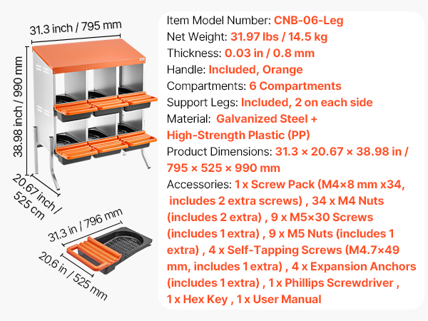 - Flexible Installation: Our laying boxes for hens offer two setup options—mount on a wall using hanging holes or place on the ground with four support legs. All necessary hardware and clear instructions are included for fast and easy installation.