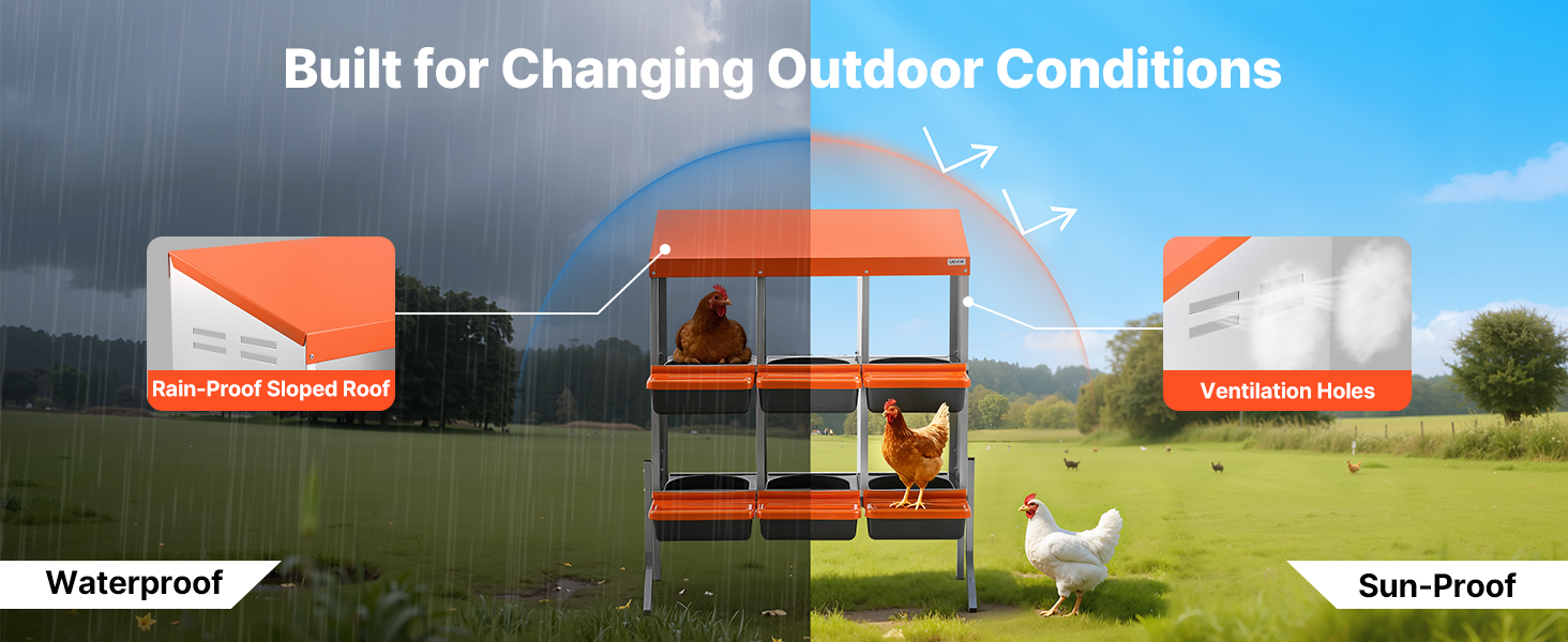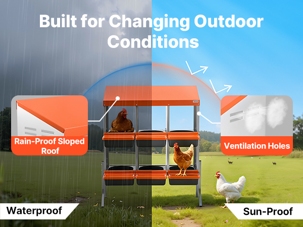 - Easy to Clean and Maintain: The trays feature drainage holes to prevent water accumulation and debris buildup. Fully detachable, they can be quickly rinsed and replaced. Ventilation holes in the roll-away nesting boxes ensure airflow, keeping the interior dry and clean.
