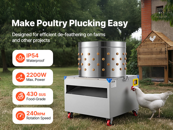 Built with stainless steel and soft rubber fingers, the chicken plucker machine is ideal for plucking feathers from medium and large-sized poultry. Handles ducks, chickens, geese, and turkeys without damaging the skin, making it the perfect all-in-one solution for backyard poultry processing.