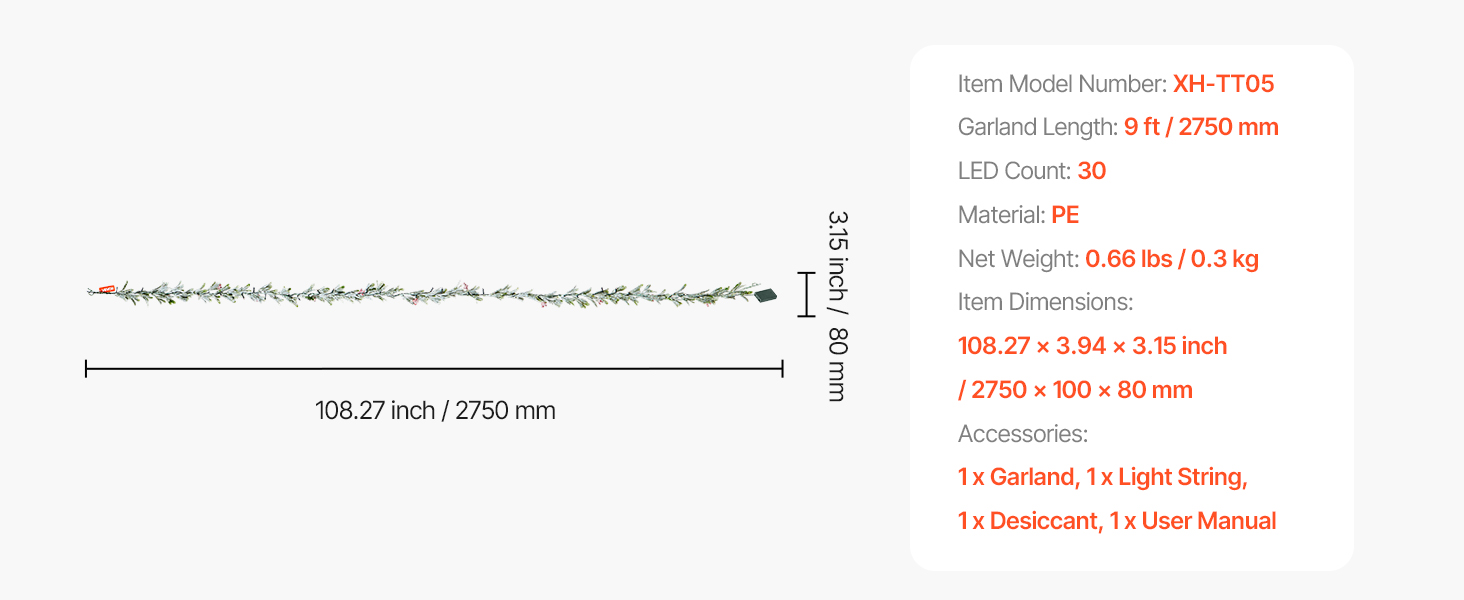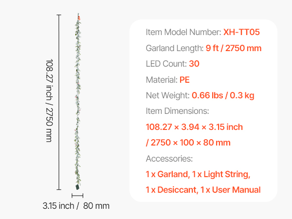 | Garland Length | 9 ft / 2750 mm |