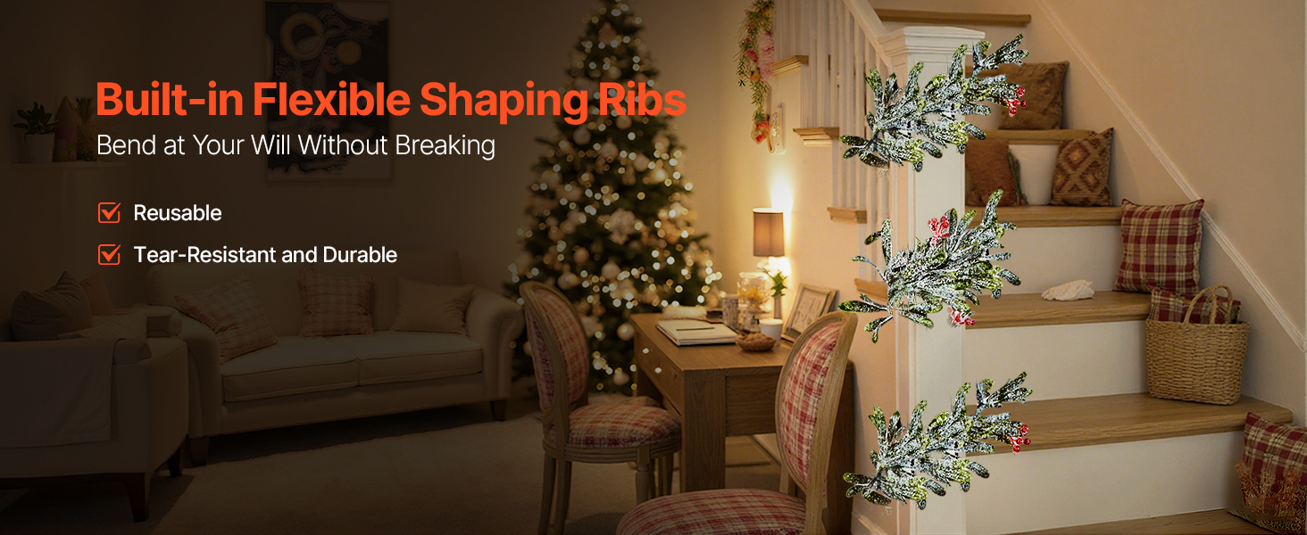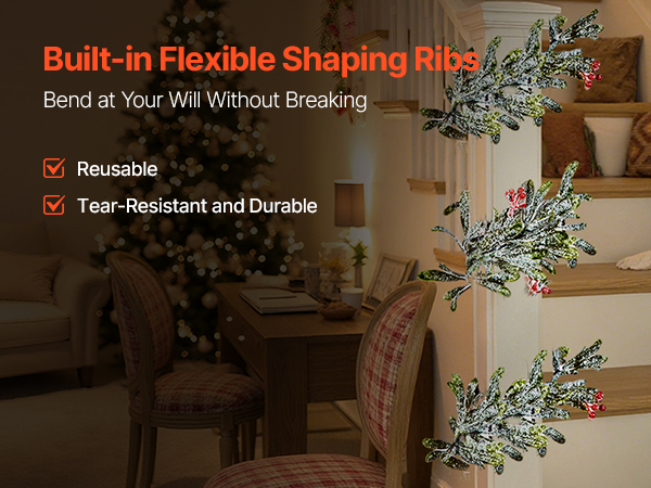 Our real-touch garland features built-in flexible shaping strips inside the branches, offering excellent bendability and tensile strength. It won’t snap when twisted or wrapped, making it easy to use and long-lasting through multiple seasons.