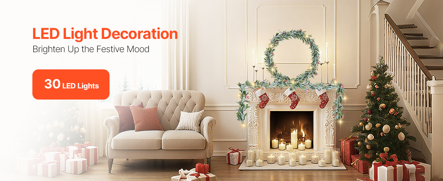Equipped with soft, energy-efficient LED lights, this garland glows beautifully at night—adding a dreamy touch to your Christmas tree, wreath, or room décor and creating a magical holiday atmosphere.