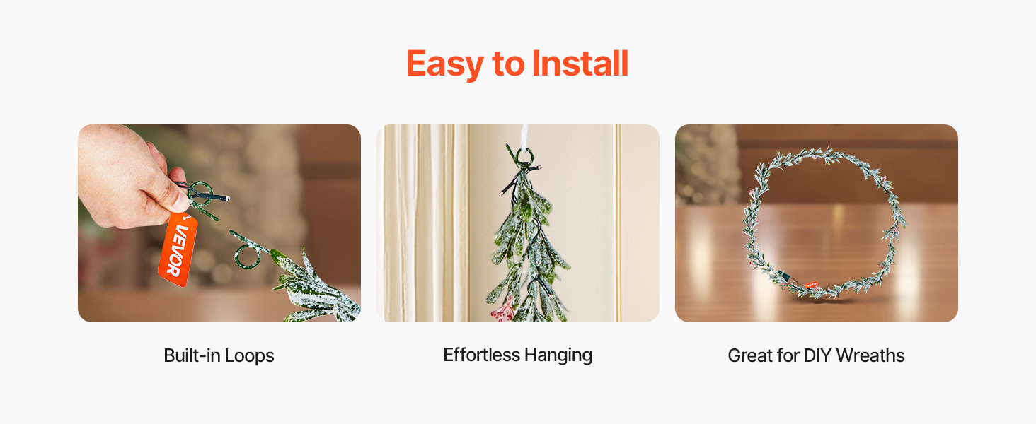 Built-in hanging loops make this Christmas greenery garland easy to install—no tools needed. The sturdy design allows quick decorating on trees, railings, windows, or mantels, saving you time during the busy season.