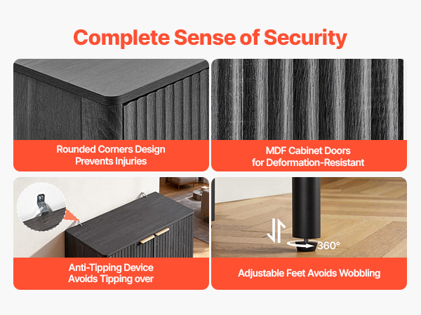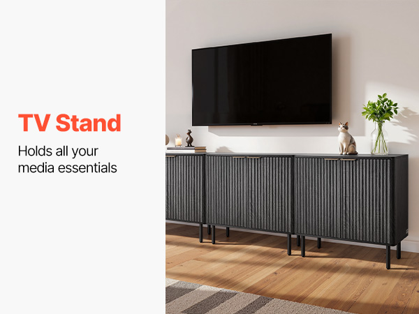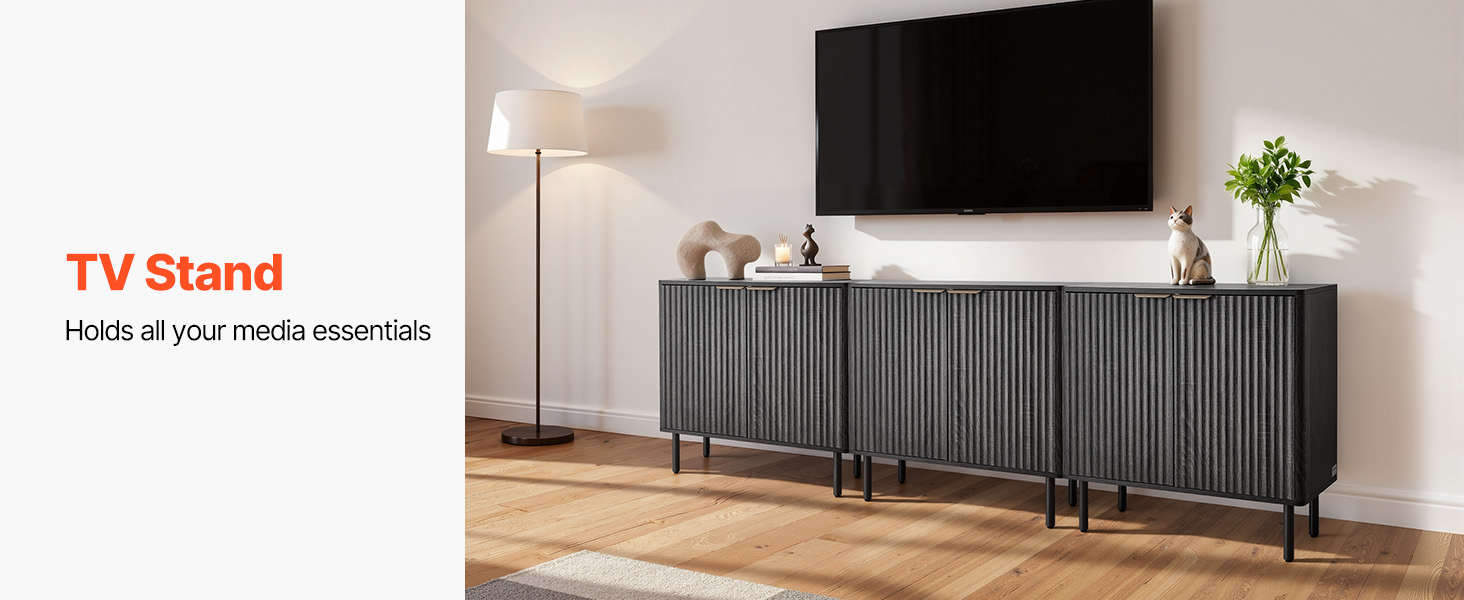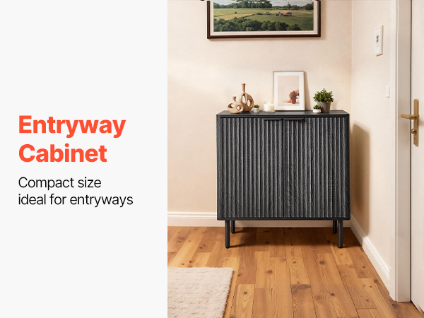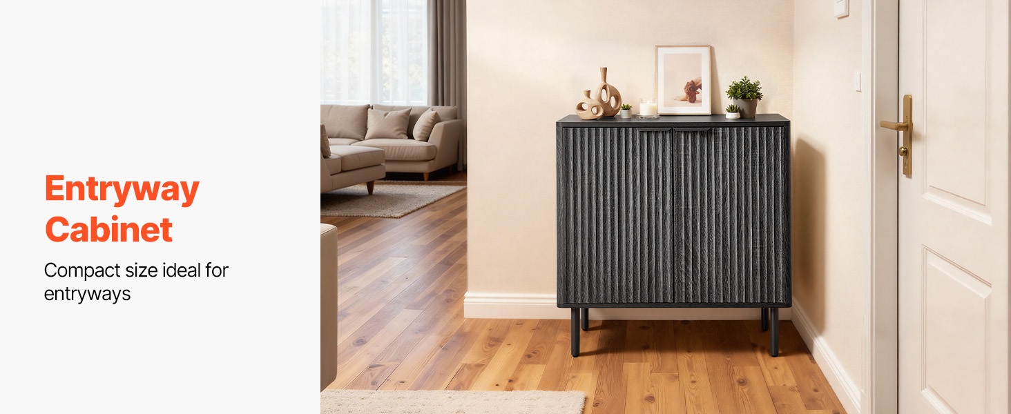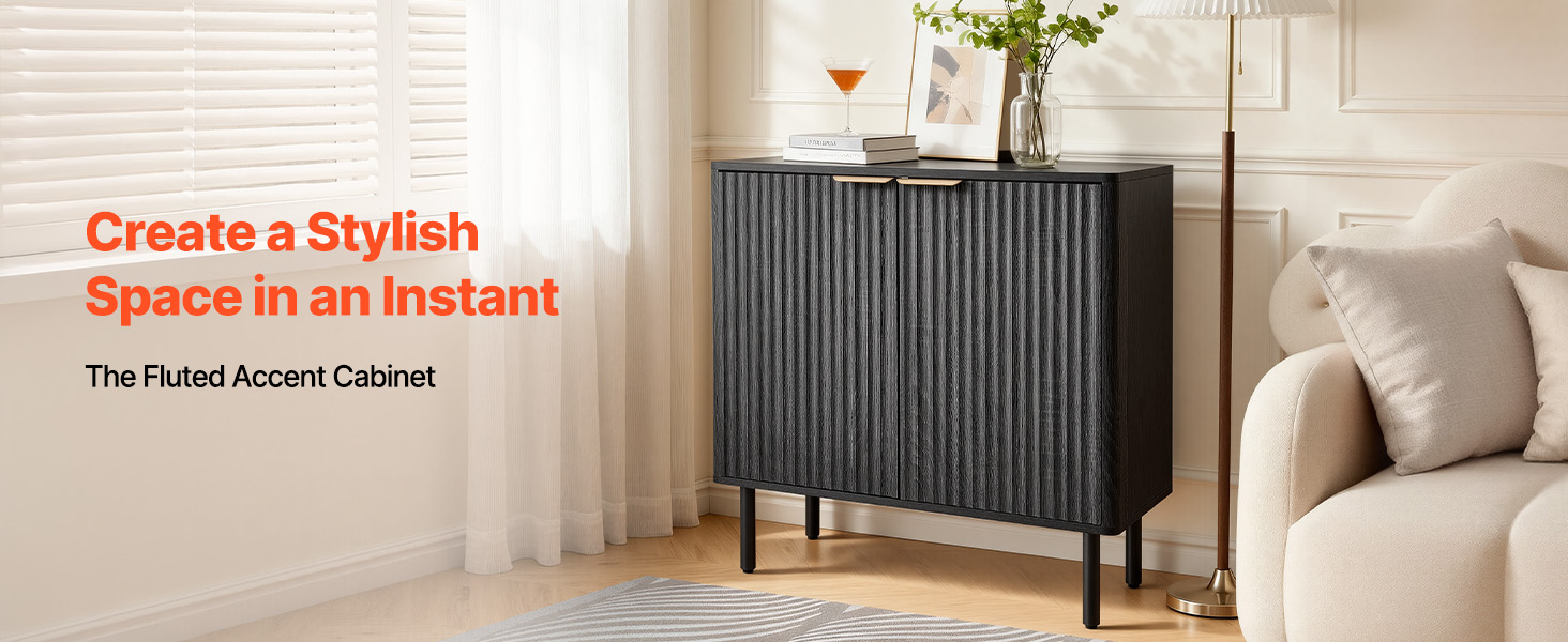 - Elegant Fluted Design: This coffee bar cabinet features vertical fluted panels and a sleek curved silhouette that add elegance to your home. The natural wood finish and metal handles blend modern and mid-century styles, making it both a stylish accent cabinet.