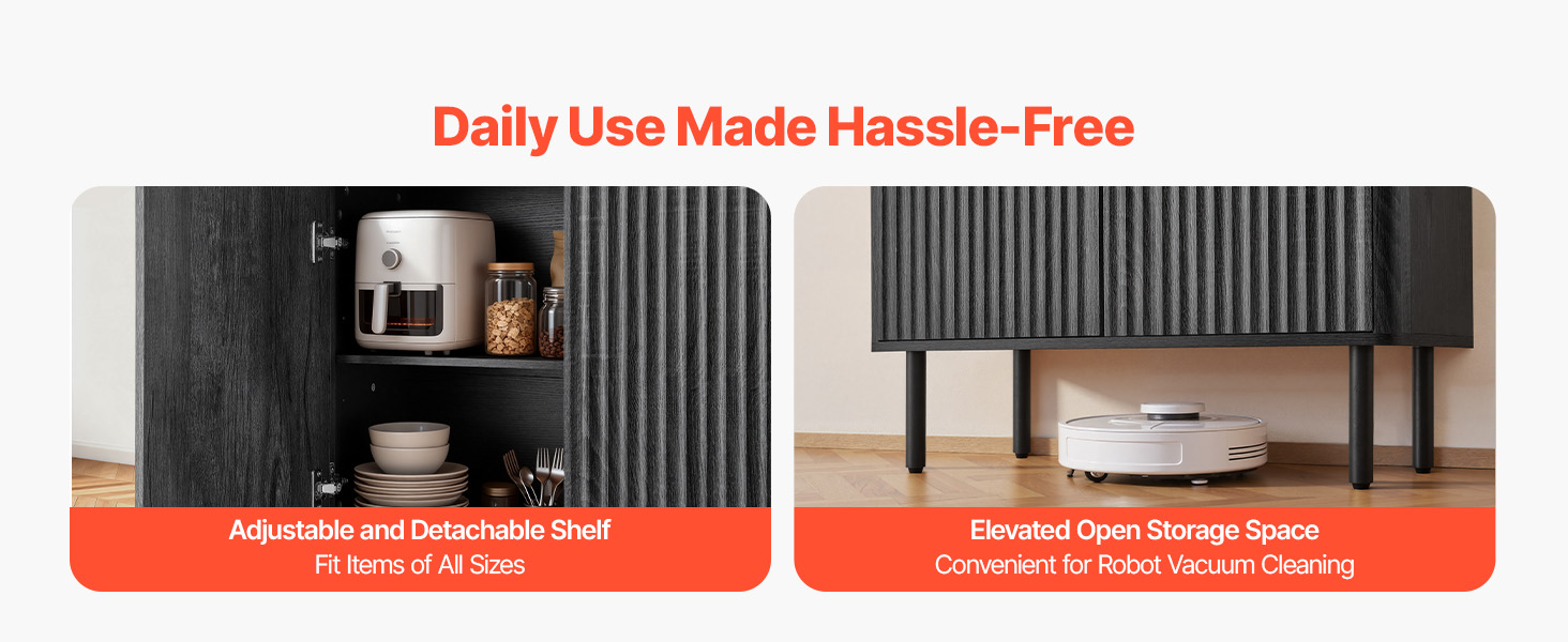 - Versatile Storage Space: The coffee bar table features hidden side compartments with adjustable and removable shelves, offering 3 height options. It stores dishes, glassware, and kitchen items, while the wide top accommodates a coffee maker, toaster, or décor.