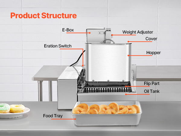 - Fully-Automated Operation: This donut-making machine features a smart control panel that enables your team to produce consistent donuts with minimal effort. It includes automated donut flipping for even cooking. Simply set it, and let the machine operate.