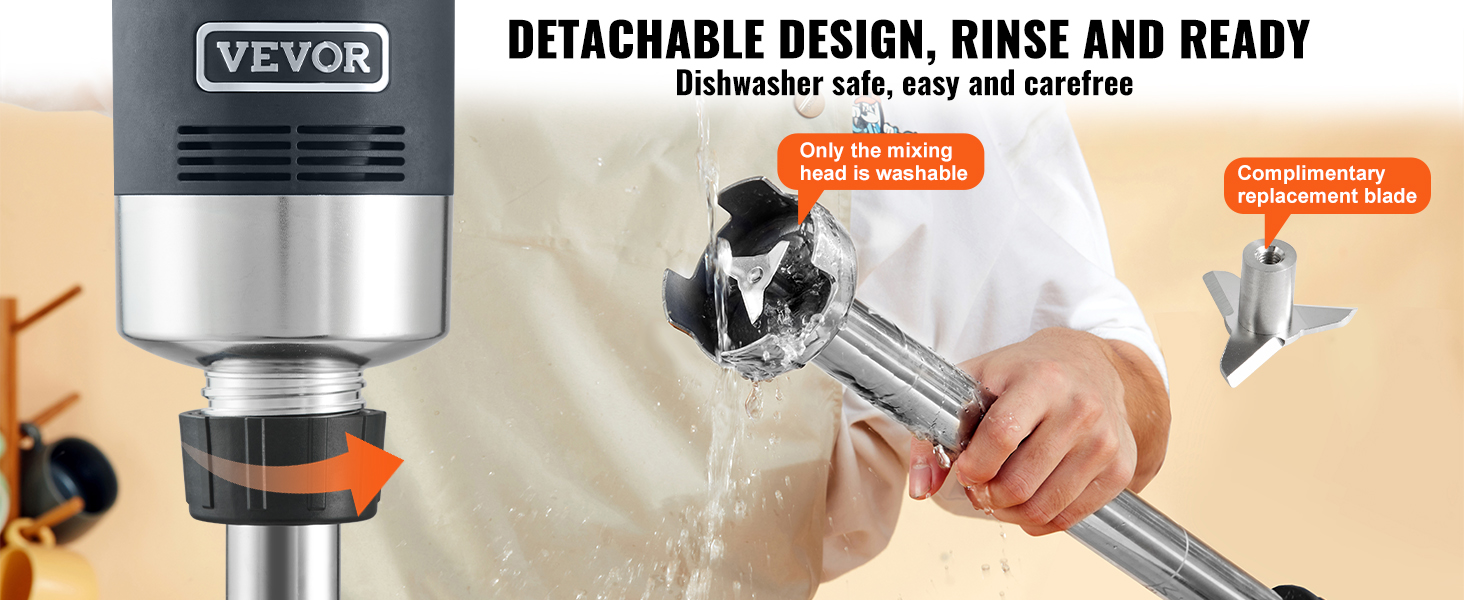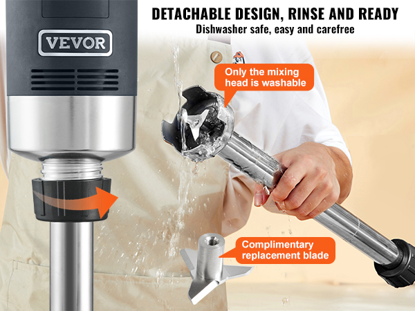 - Easy to Disassemble and Clean: The detachable design allows simple rotation to assemble or disassemble the handle, blending foot, and other accessories. The industrial immersion blender blade is dishwasher-safe for hassle-free cleaning.