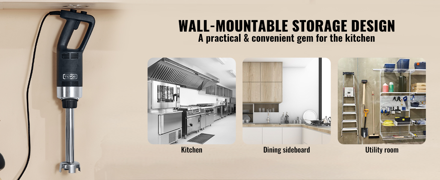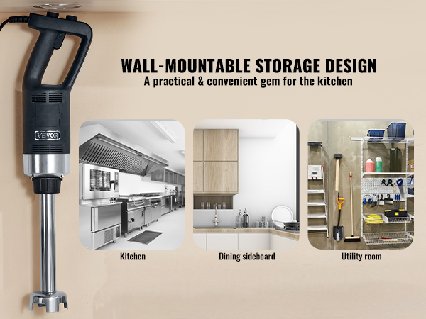 - User-Friendly Wall-Mount Design: An innovative storage solution, specifically designed for wall-mounting. Depending on the setting, choose wall-mounted storage for easy accessibility. Elevated storage ensures better hygiene. It's a practical and convenient gem for any kitchen, making it a must-have for those investing in a Commercial Immersion Blender.