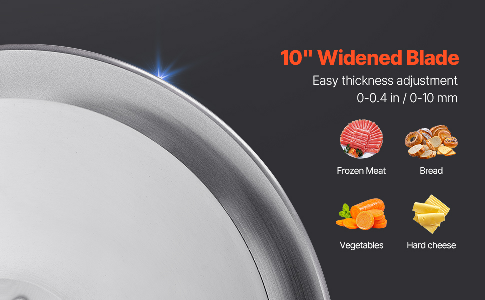 The upgraded electric meat slicer features a 10″ widened blade and an adjustable thickness of 0-0.4 in / 0-10 mm. You can adjust it according to your needs, giving your meals that personal touch with every slice, from delicate layers to robust portions.