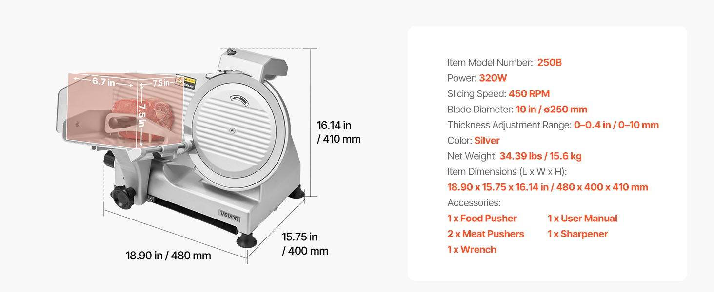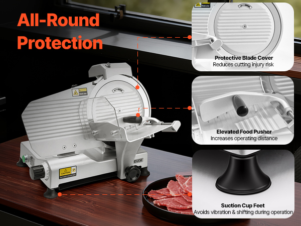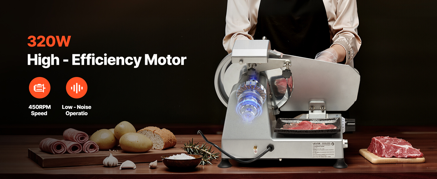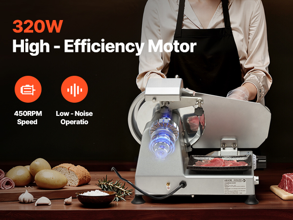 - Fast Slicing: Powered by a 320W motor with speeds up to 450 RPM, this commercial meat slicer combines sharp blades to efficiently slice a variety of ingredients, boosting your meal prep efficiency