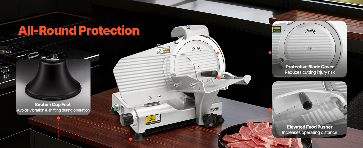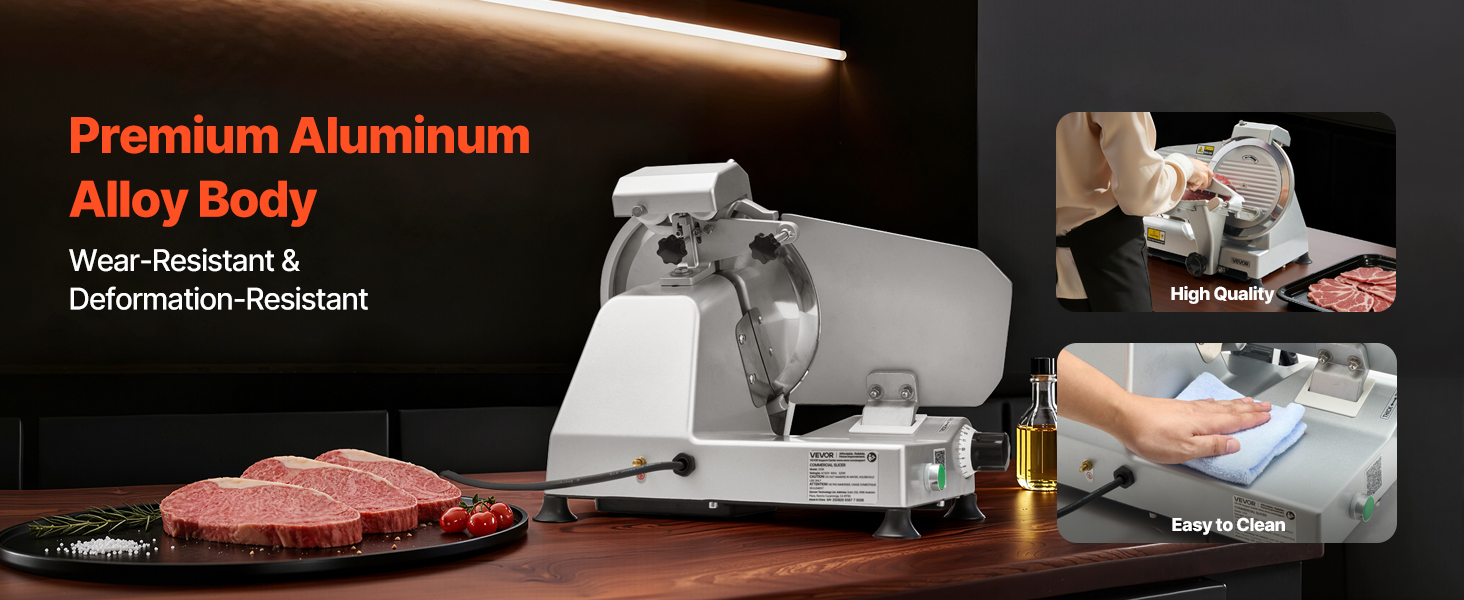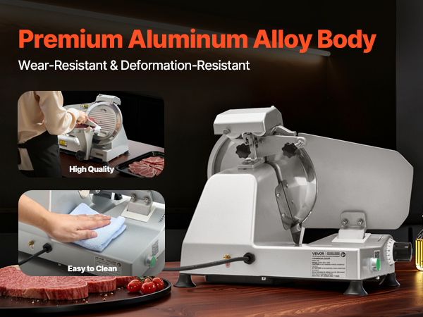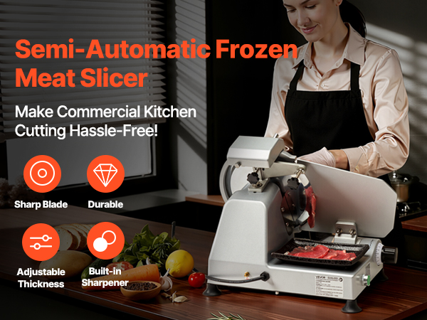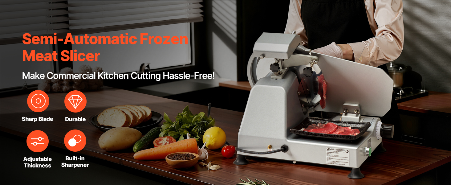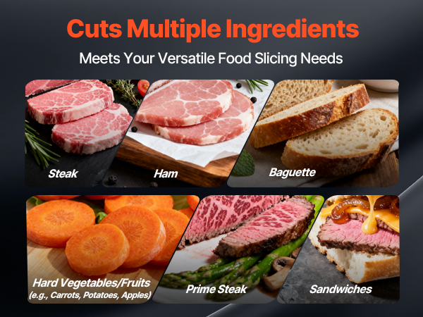 - Wide Application: This slicer is suitable for cutting meats, deli meats, roast beef, turkey breast, baguettes, vegetables, fruits, and more. It's ideal for both commercial and home use, including restaurants, butcher shops, cafeterias, and home kitchens