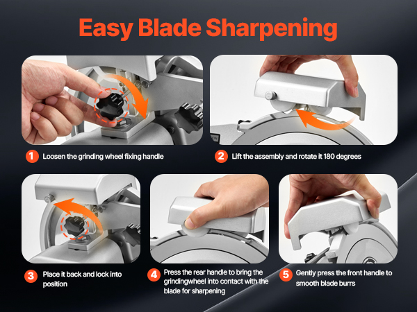 No disassembly required. Even when slicing frozen or tough ingredients, you can easily restore blade sharpness for continuous, efficient cutting.