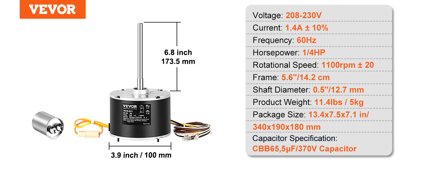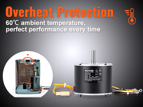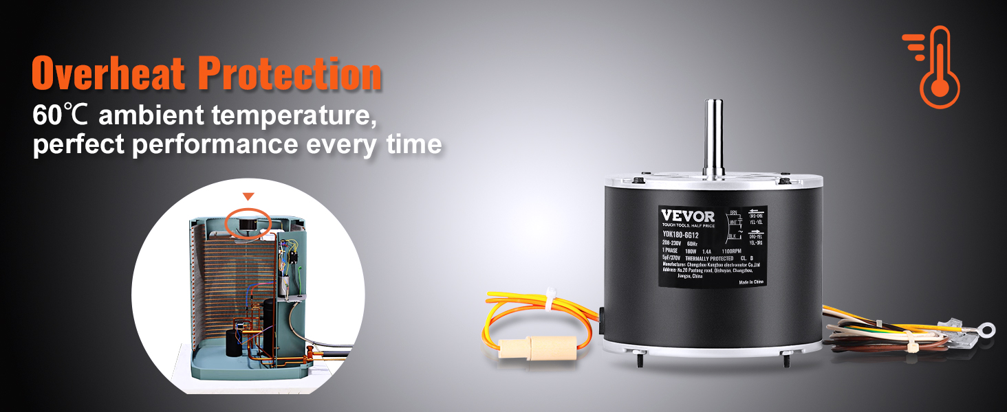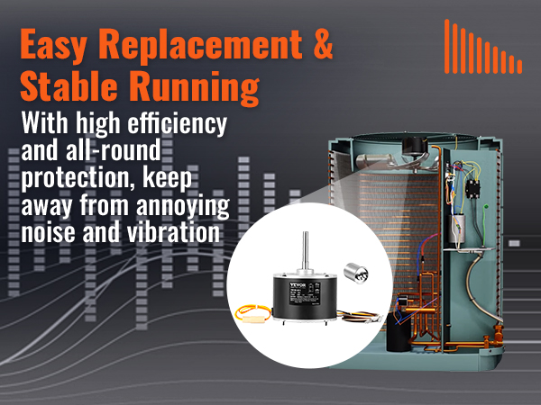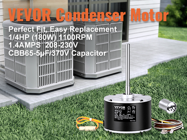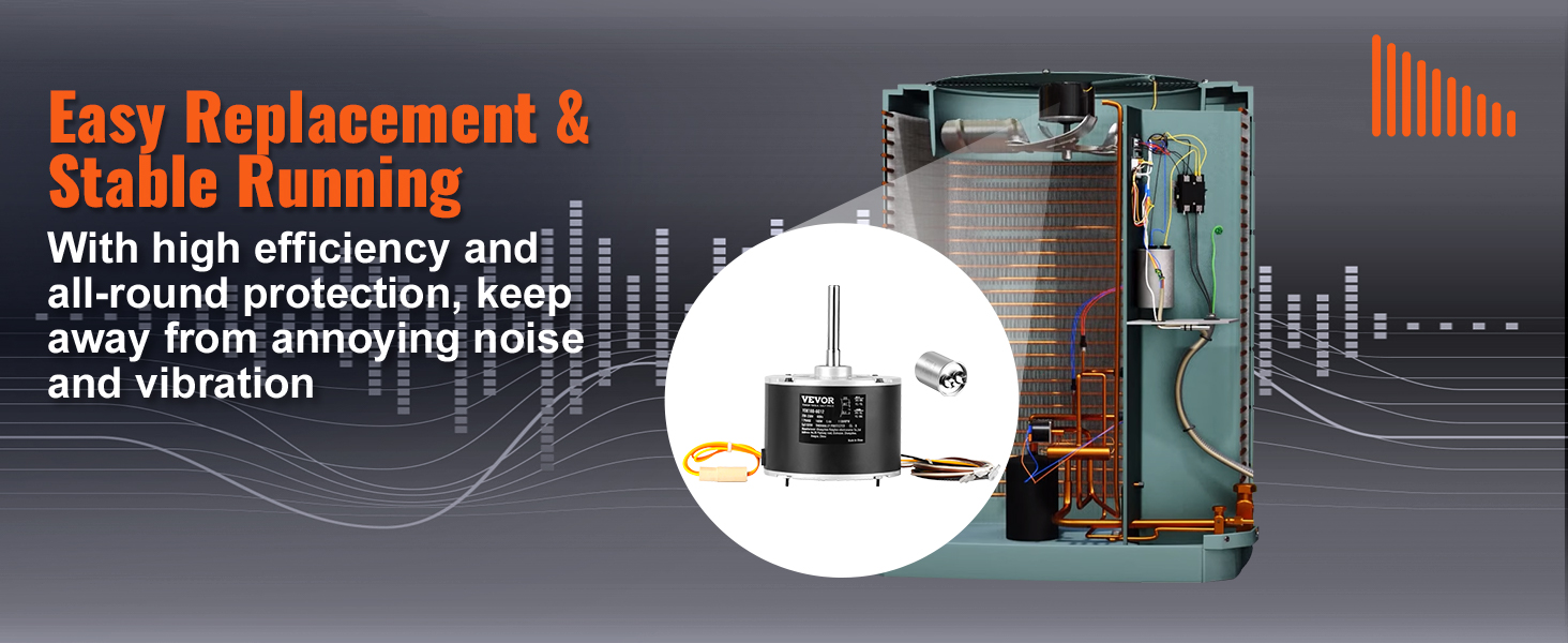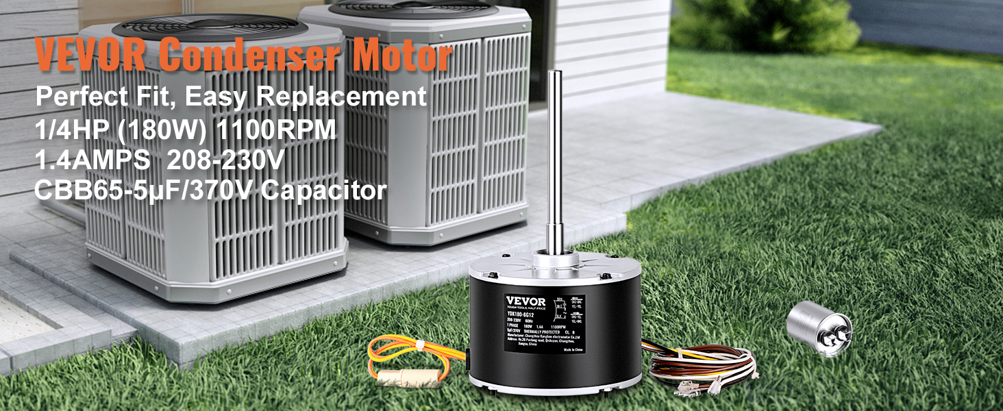 The condenser fan motor powers the fan blades which cool the refrigerant in your AC units from a hot gas back to a cool liquid. VEVOR has your back with our upgraded, ultra-durable replacement motor. Boasting high performance and low price, you won’t want to miss out on this game-changing upgrade.