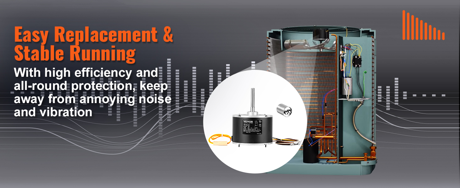 The condenser fan motor powers the fan blades which cool the refrigerant in your AC units from a hot gas back to a cool liquid. VEVOR has your back with our upgraded, ultra-durable replacement motor. Boasting high performance and low price, you won’t want to miss out on this game-changing upgrade.