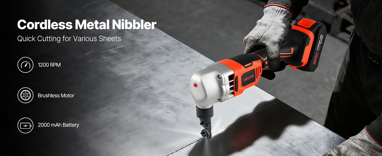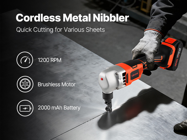 - Powerful Performance: This cordless metal nibbler features a brushless motor operating at 1,200 RPM, delivering robust power for efficient and rapid cutting. Ideal for cutting tough materials including stainless steel, aluminum, and copper.