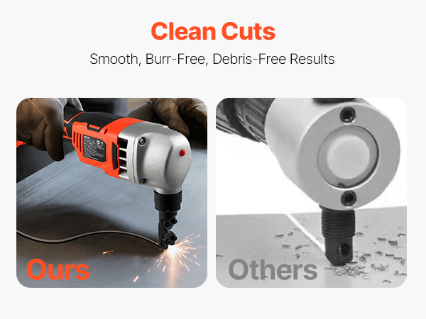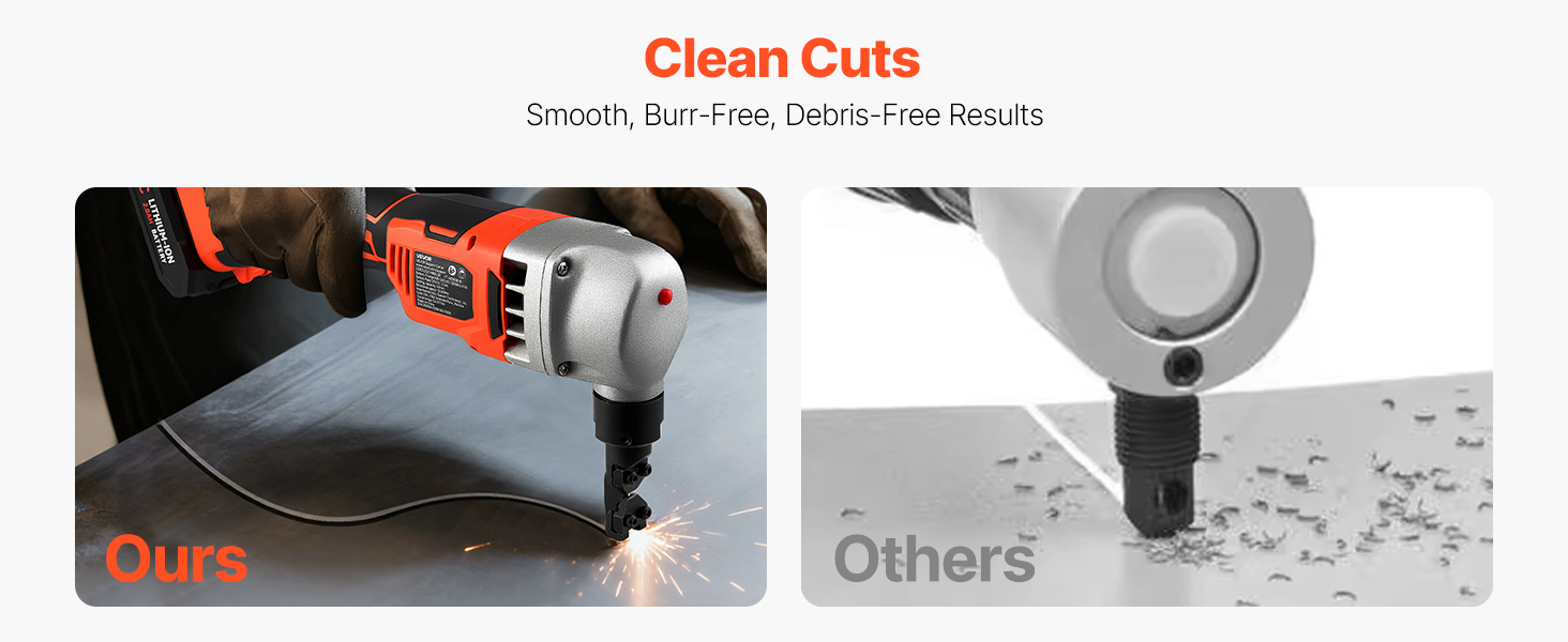 - Excellent Cutting Capacity: Our cordless nibbler meets the processing needs of various metal plates. It handles steel ≤ 0.06 in/1.6 mm, stainless steel ≤ 0.04 in/1 mm, aluminum, and copper plates ≤ 0.08 in/2 mm, delivering clean and smooth cutting.