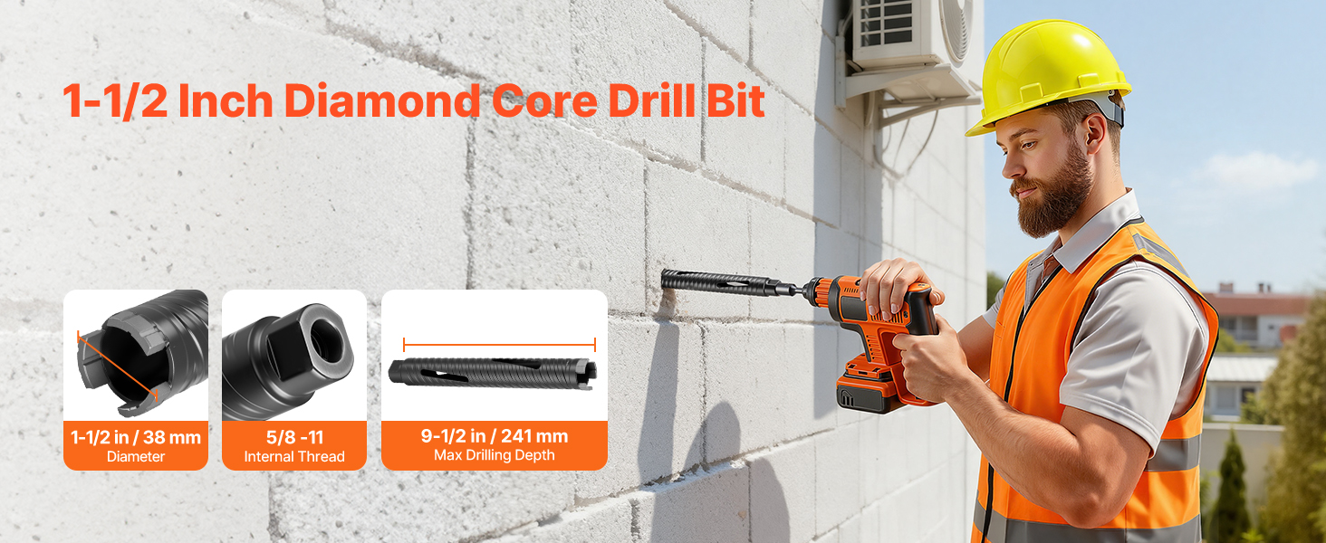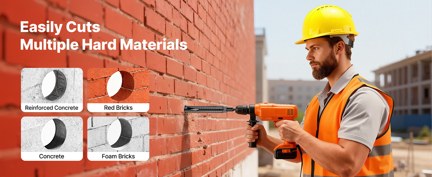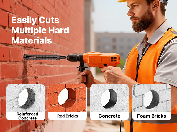 The core bit ensures clean, precise holes in tough materials like red bricks, concrete, and foam blocks. Suitable for all your drilling needs in construction and renovation projects.