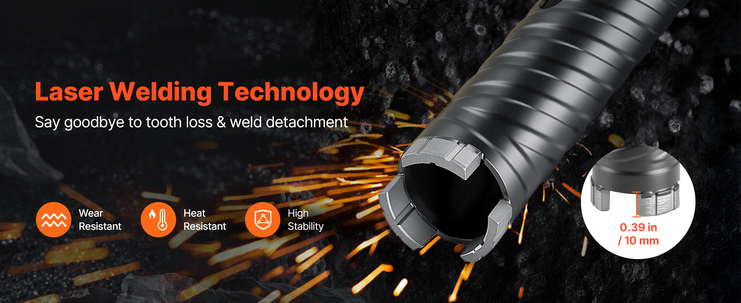 Crafted with high-precision welding for excellent wear resistance and high-temperature stability, this concrete core drill bit keeps diamond teeth strong and secure under tough drilling conditions, minimizing tooth loss or detachment for long-lasting durability.