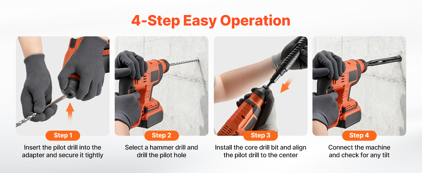 - Precise Positioning: Our diamond dry coring bit includes a pilot drill, eliminating the need for pre-drilling. The sharp tip rapidly penetrates the surface, enabling faster and more accurate positioning for smooth, uninterrupted operation.