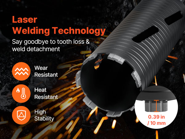 Crafted with high-precision welding for excellent wear resistance and high-temperature stability, this concrete core drill bit keeps diamond teeth strong and secure under tough drilling conditions, minimizing tooth loss or detachment for long-lasting durability.