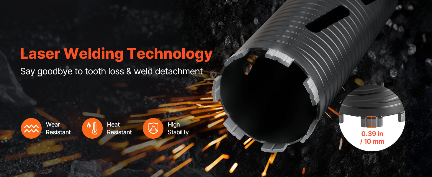 - Durable & Sturdy: Crafted from quality carbon steel with high-precision welding, this concrete core drill bit boasts 95HRB hardness. It resists heat buildup during high-speed drilling or dry operations, avoiding blade detachment and enhancing longevity.