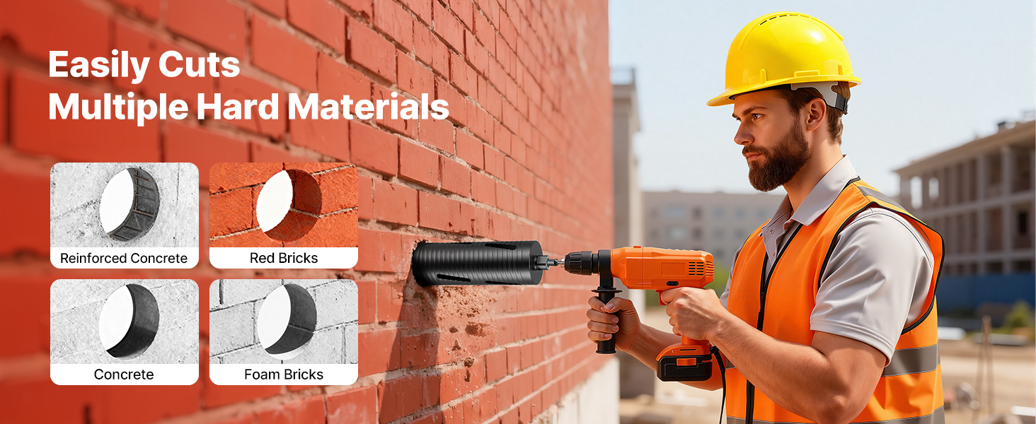 The core bit ensures clean, precise holes in tough materials like red bricks, concrete, and foam blocks. Suitable for all your drilling needs in construction and renovation projects.
