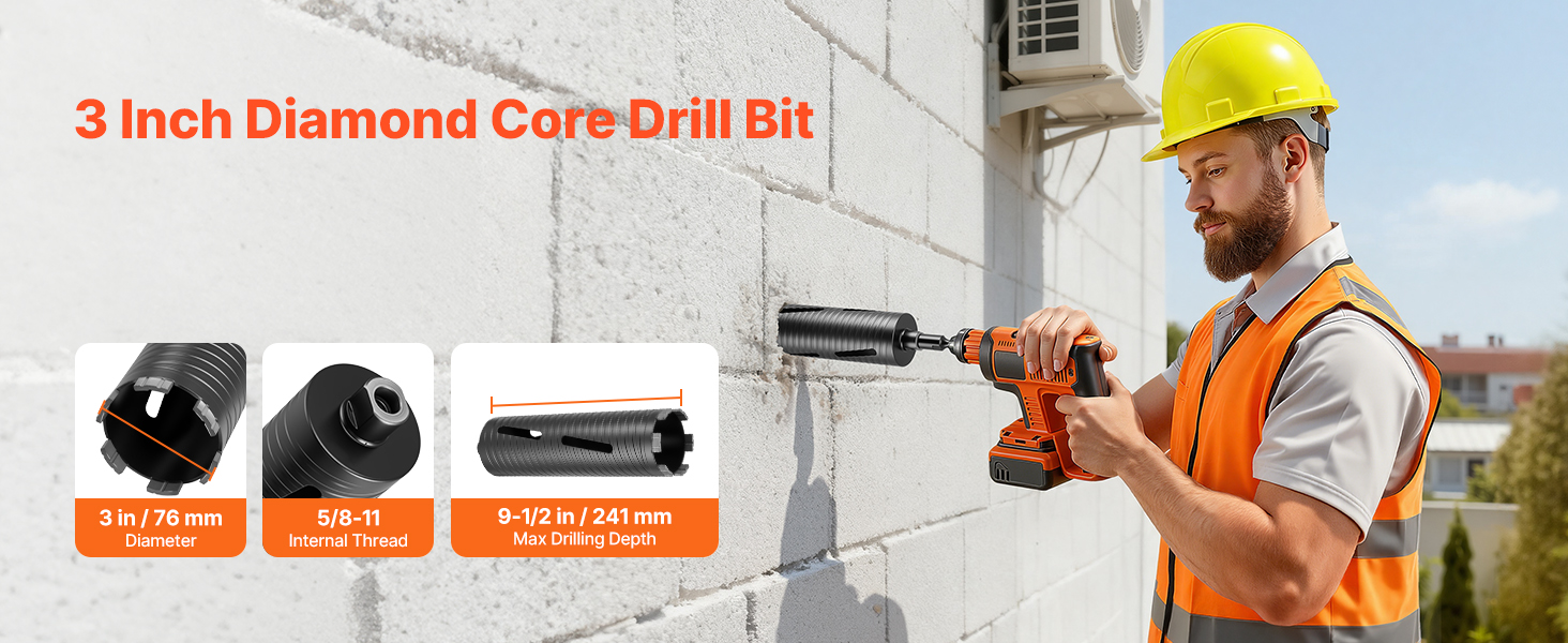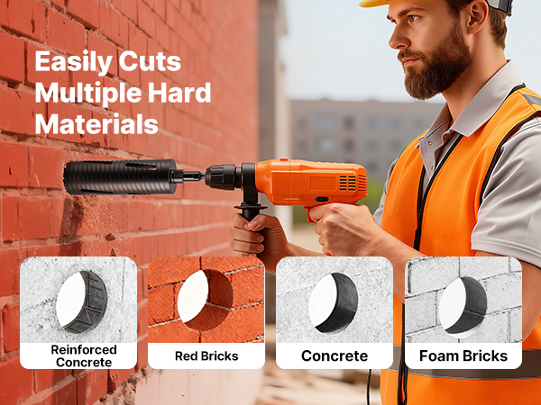 The core bit ensures clean, precise holes in tough materials like red bricks, concrete, and foam blocks. Suitable for all your drilling needs in construction and renovation projects.