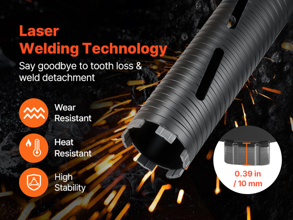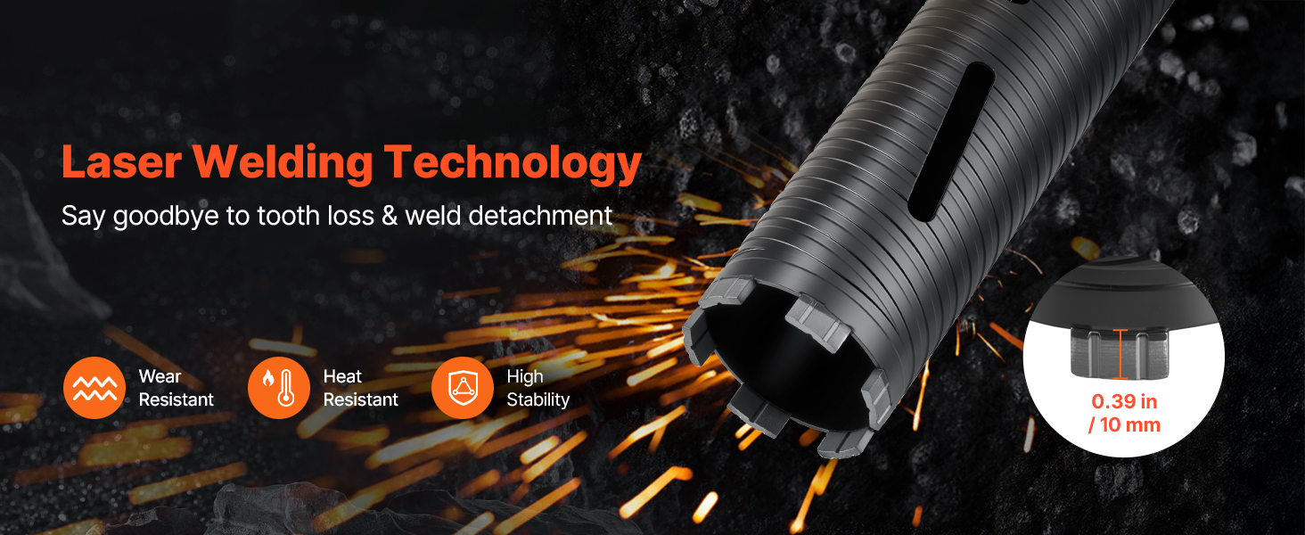 Crafted with high-precision welding for excellent wear resistance and high-temperature stability, this concrete core drill bit keeps diamond teeth strong and secure under tough drilling conditions, minimizing tooth loss or detachment for long-lasting durability.